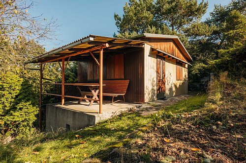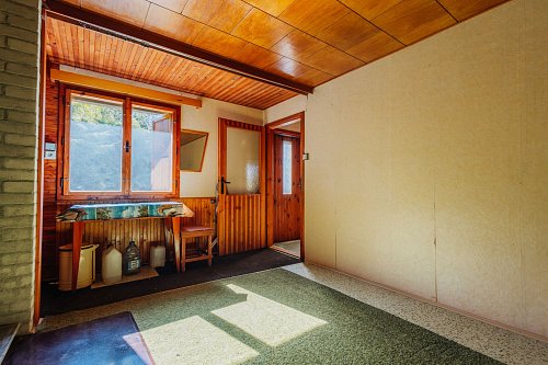 Dřevěná chata z roku 1980, 28 m2, podsklepená, v dobrém stavu